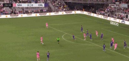 第29分钟,梅西弧顶处尝试1v3单挑,奥兰多城后卫从侧方将梅西撞倒,裁判没有表示。