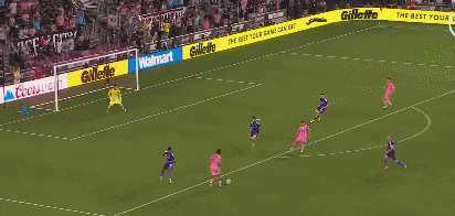 第75分钟,阿尔巴传中,阿连德禁区之内被布雷卡洛拉倒,布雷卡洛吃到第2张黄牌被罚下,迈阿密国际获得点球!梅西站在12码处操刀主罚命中,迈阿密国际1-1扳平!