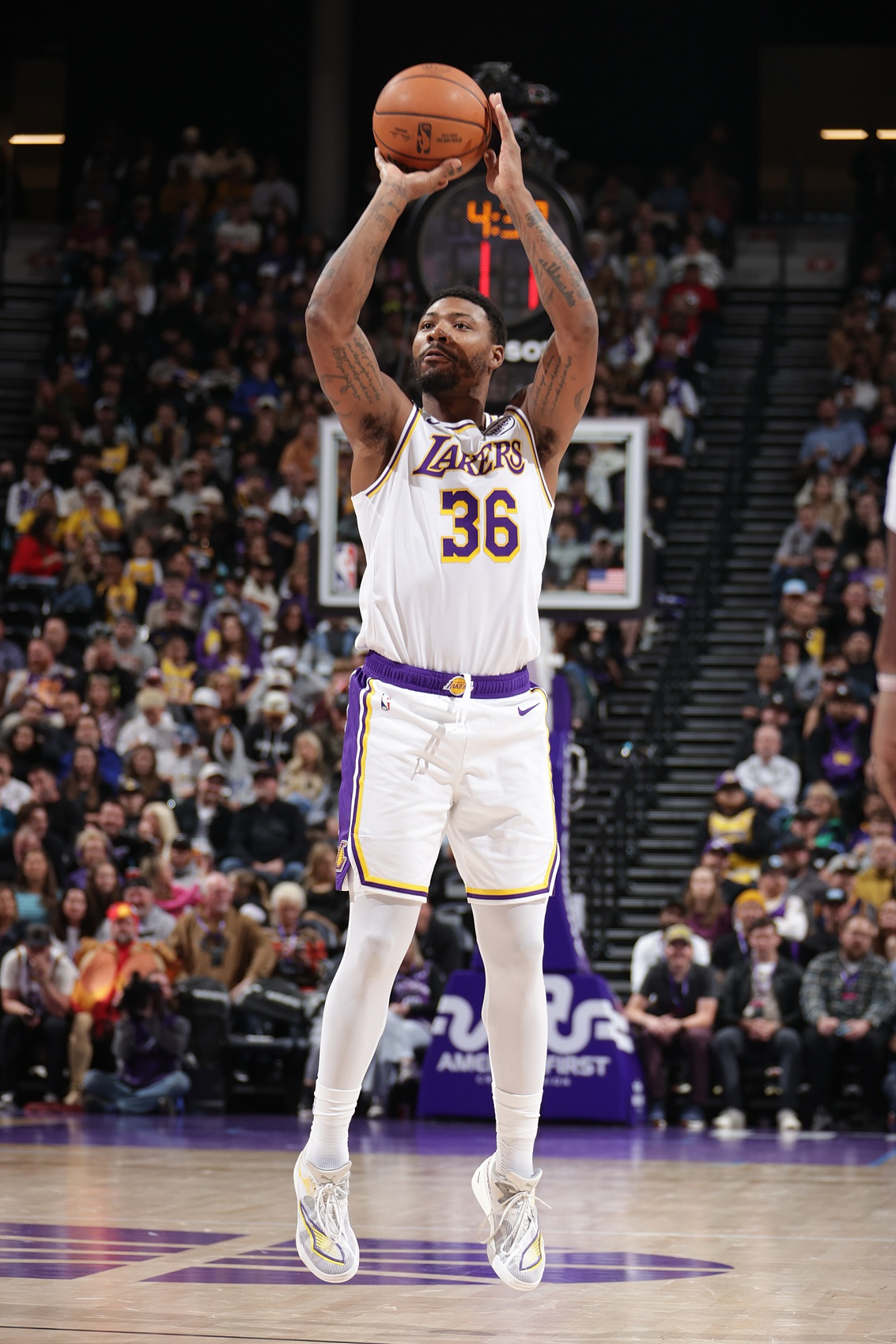里夫斯伤退,斯玛特顶替他首发,湖人的进攻很依赖被放空球员的抽奖效果。